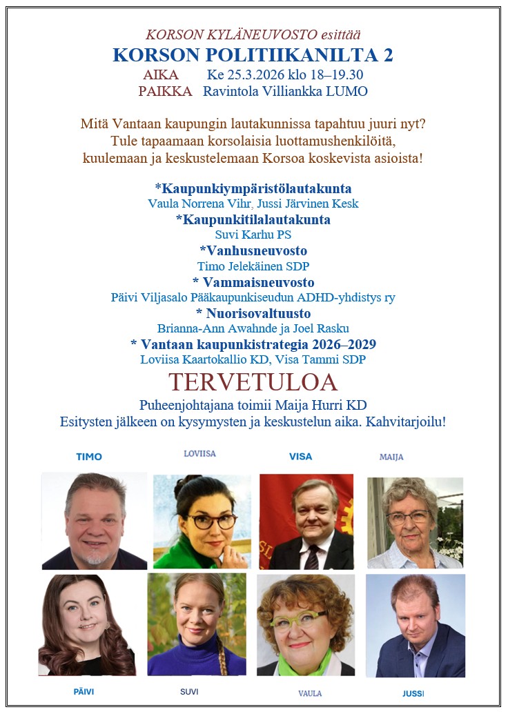 Korson Kyläneuvosto järjestää toisen politiikkaillan