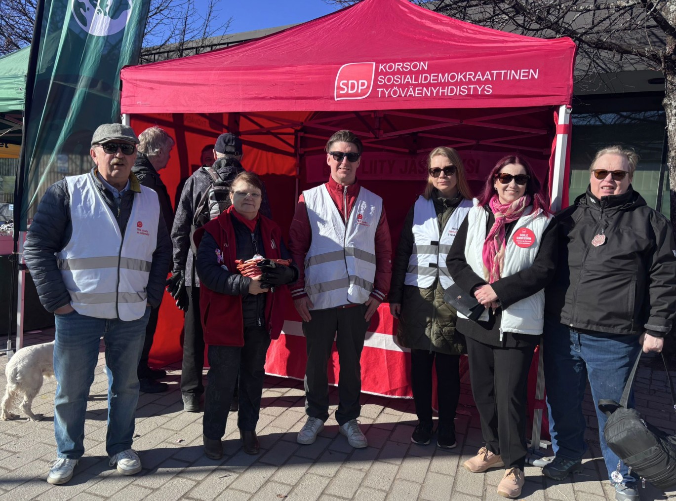 Korson SDP edustajia teltalla Korson markkinoilla la-su 21.-22.3.2026.